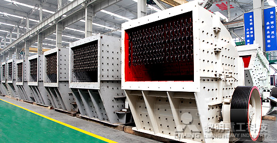 2、中細碎--反擊式破碎機:反擊破在石灰石破碎制砂生產線中常用于二破加工,它采用反擊板和板錘間的間隙控制出料粒形和粒度,可以滿足建筑砂石使用需求,利于骨料和水泥的粘結。
